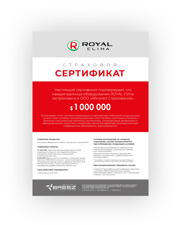 в сети Интернет о приобретённой в период с 1 января по 31 декабря 2025 года бытовой продукции ROYAL Clima.